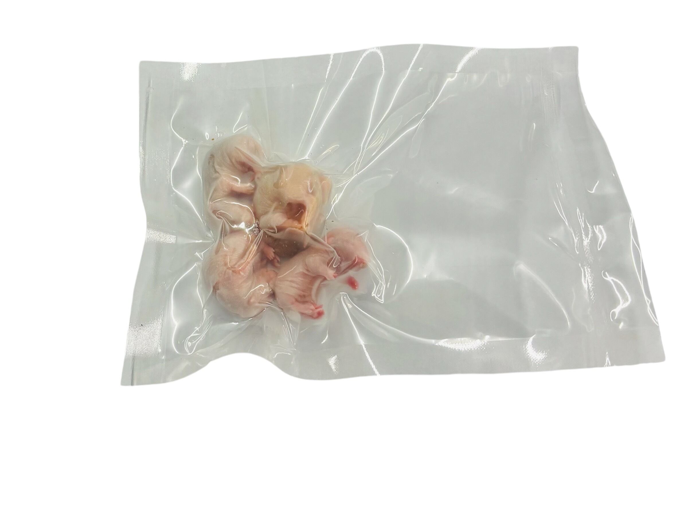 産まれた直後〜6日のピンクラットになります。 重さ:7〜10g程度 手足の欠損を避ける為丸まった状態にしてあります。 冷凍やけを防ぐため4匹ずつの包装になります。